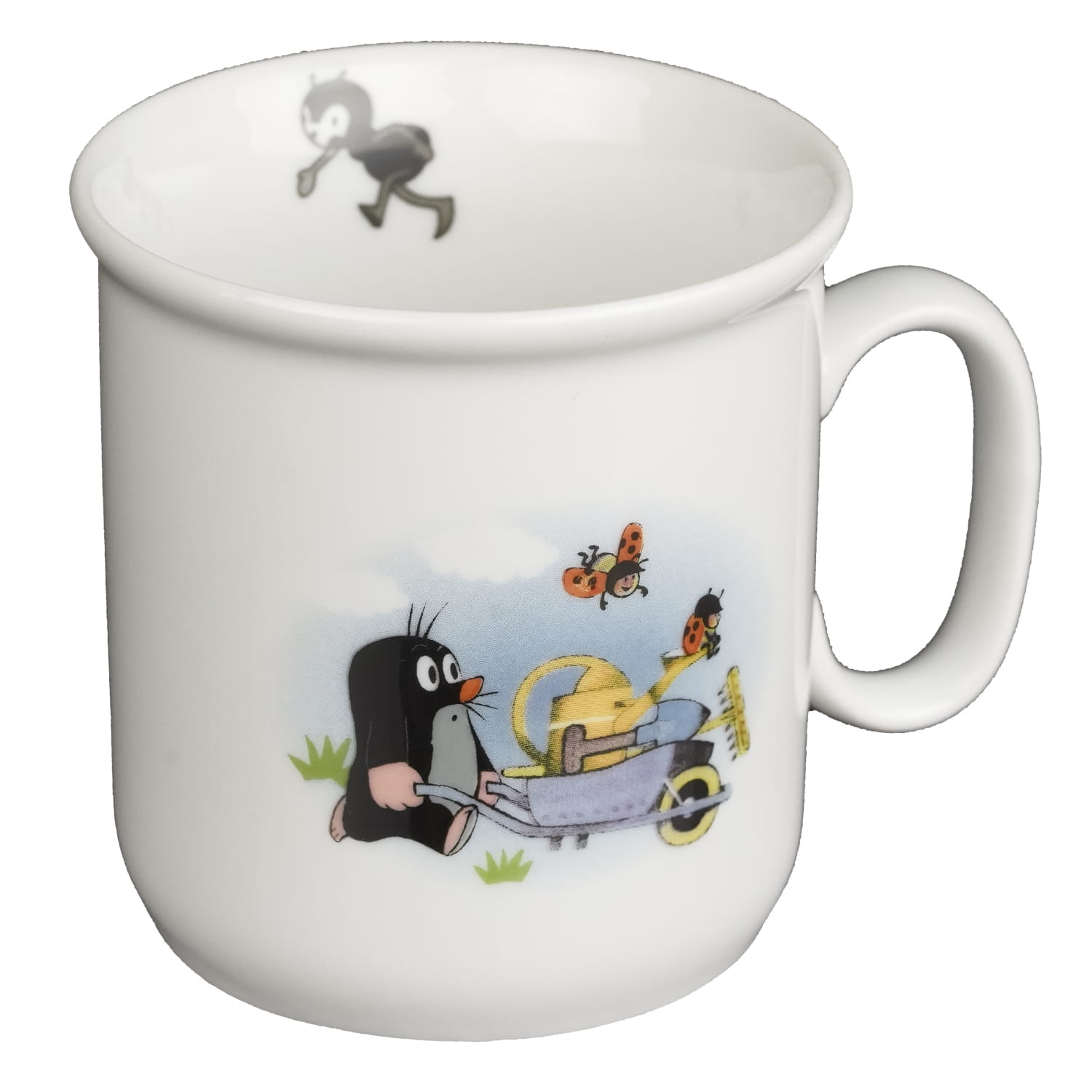 Wykonany z białej porcelany w miejscowości Klášterec nad Ohří. Sygnowany przez Karlovarský Porcelán, A.S. Fason „Gaston”. Prosta, elegancka forma. Najważniejszy na tej porcelanie jest bohater dziecięcej czechosłowackiej kreskówki powstałej w 1957 roku, którego animatorem był animator Zdeněk Miler. Krecik, po czesku Krtek. Z jednej strony podobizna Krecika z biedroneczkami, a z drugiej słoneczko. Wewnątrz kubka spaceruje mrówka.